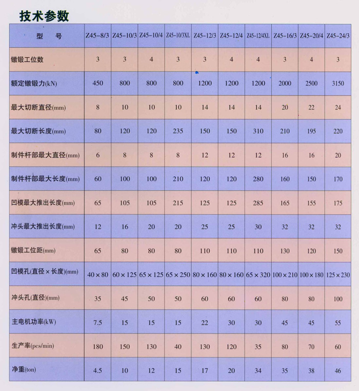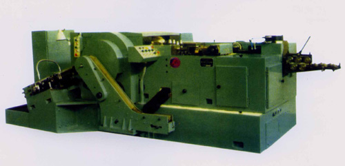 本機床集冷鐓、切邊、搓絲于一體,效率高、占地小,是生產內、外六角、法蘭面螺栓、車修壁虎及自行車腳蹬螺栓等高難度異性螺栓的理想設備。圓剪式切料機構及凹模推出機構均由擺臂帶動完成,沖頭推出機構課單獨方便的調整,自動控制的離合器制動器使你調整靈活。